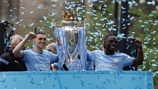 Gelar tersebut merupakan yang keempat buat Man City secara beruntun. Pasukan Pep Guardiola jadi tim Inggris pertama dalam sejarah yang merebut Premier League empat kali beruntun.