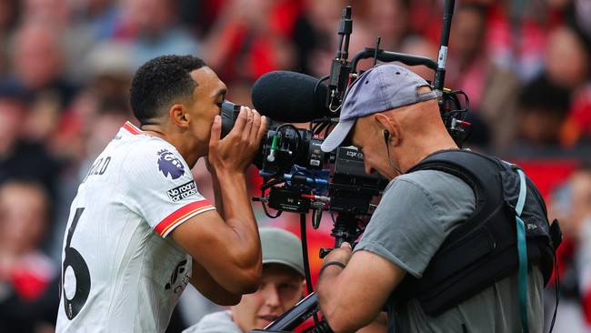 Trent Alexander-Arnold menyambar kamera televisi di pinggir lapangan dan langsung menciumnya. Selebrasi itu meniru apa yang dilakukan legenda Liverpool, Steven Gerrard, saat mencetak gol di Old Trafford tahun 2009, 2010, dan 2014.