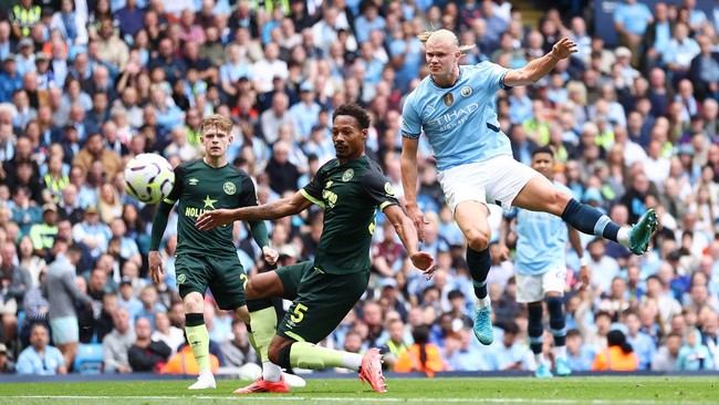 Manchester City menjamu Brentford dalam lanjutan Liga Inggris 2024/2025. Di babak pertama, Erling Haaland membawa The Citizens memimpin 2-1.