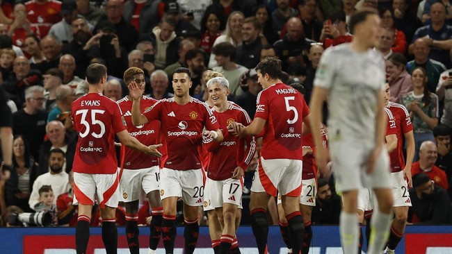 MU menang 7-0 atas Barnsley, Rabu (18/9/2024). Dalam pertandingan di Old Trafford, Setan Merah menang berkat gol Marcus Rashford (2 gol), Alejandro Garnacho (2 gol), Christian Eriksen (2 gol), dan Antony.