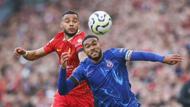 Reece James memimpin the Blues saat menantang Liverpool di Stadion Anfield pada lanjutan Liga Inggris, Minggu (20/10/2024). Mohamed Salah membawa tim tuan rumah memimpin setelah mengonversi hadiah penalti di babak pertama.