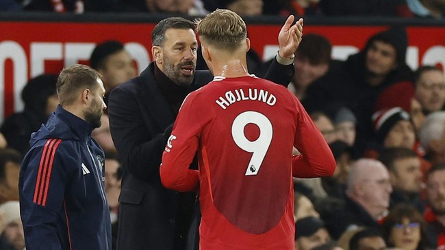 Striker Manchester United Rasmus Hojlund belum tokcer di musim ini. Caretaker MU Ruud van Nistelrooy menasihati Hojlund agar tetap tenang dan percaya diri.