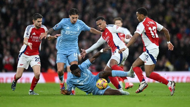Arsenal vs Nottingham Forest berlangsung di Emirates Stadium, Sabtu (23/11/2024) malam WIB. Meriam London sudah mengancam di menit kedua lewat bola tembakan Leandro Trossard yang ditepis kiper.