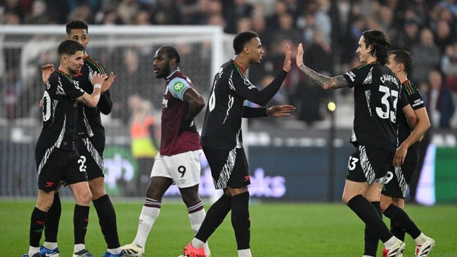 West Ham vs Arsenal berlangsung di London Stadium, Minggu (1/12/2024) dini hari WIB. Arsenal memimpin 4-0 lebih dulu lewat gol-gol Gabriel Magalhaes, Leandro Trossard, Martin Odegaard, dan Kai Havertz.