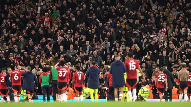 MU akhirnya berbalik menang 2-1 setelah dua gol di pengujung waktu normal dari penalti Bruno Fernandes dan Amad Diallo menjebol jala Ederson.