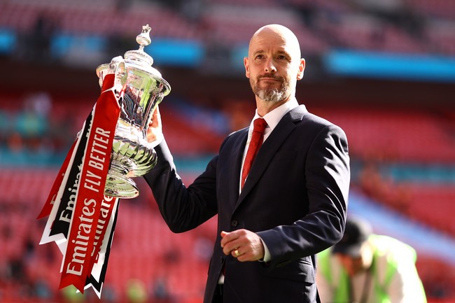 Erik ten Hag menjabat sebagai manajer Manchester United pada 2022-2024. Dua trofi yang dipersembahkannya adalah Carabao Cup dan Piala FA.