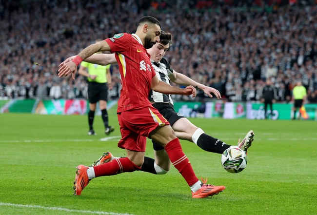 Mohamed Salah tak berkutik di laga kontra Newcastle United pada final Carabao Cup. Salah mati kutu, sulit keluar dari kawalan bek sayap muda, Tino Livramento.