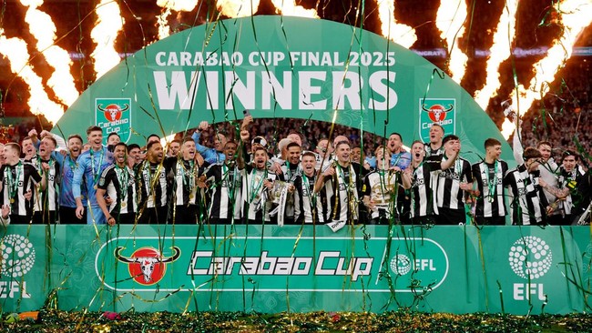 Newcastle United menjadi juara Carabao Cup 2024/2025. Kepastian tersebut didapat usai The Magpies mengalahkan Liverpool 2-1 Laga final berlangsung di Stadion Wembley, London, Minggu (16/3/2025).