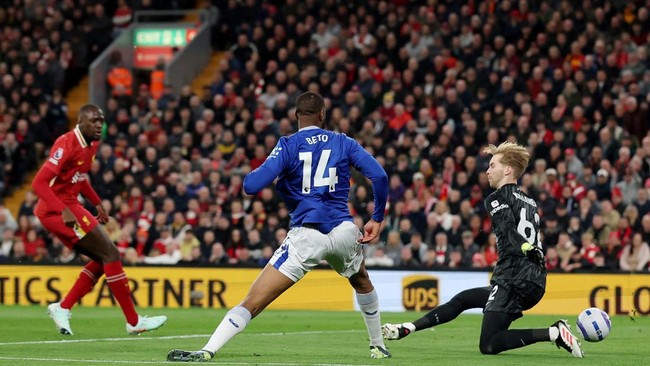 Everton sempat mencetak pada menit ke-20 lewat Beto yang memenangi duel dengan Virgil van Dijk dan melepaskan bola melewati sela kaki Caoimhin Kelleher. Namun, gol itu dianulir VAR karena Beto terjebak offside.