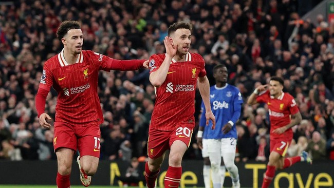 Liverpool terus mendekatkan diri ke gelar juara Liga Inggris. Ini setelah The Reds menang 1-0 atas Everton lewat gol Diogo Jota.