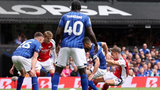 Odegaard sempat menyentuh lagi bola itu sebelum diterima Trossard. Meski dikawal ketat pemain Ipswich, Trossard bisa menyepak bola melewati sela kaki Darrel O'Shea dan masuk ke gawang.
