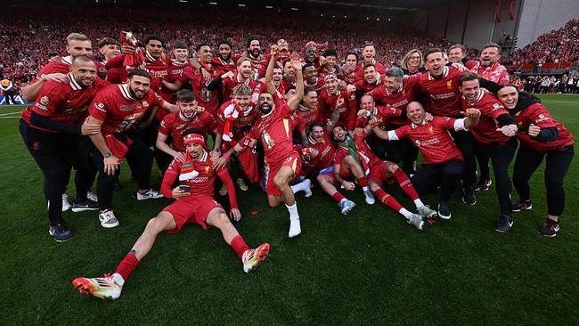Skuad Liverpool pun bisa merayakan gelar juara Liga Inggris yang mereka menangkan di hadapan penggemar sendiri. The Reds pernah jadi juara pada 2020, tapi perayaan juara tak dihadiri penggemar karena pembatasan COVID-19.