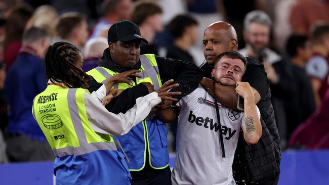 Melansir Daily Mail, beberapa ada yang nekat mencoba menerobos ke lapangan. Satu fans West Ham United sempat berhasil masuk, namun segera diciduk.