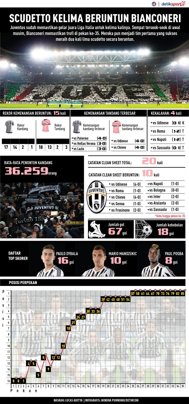 Juve pun sudah berpesta, berikut ini perjalanan Juve hingga pekan ke-35 dalam angka-angka.