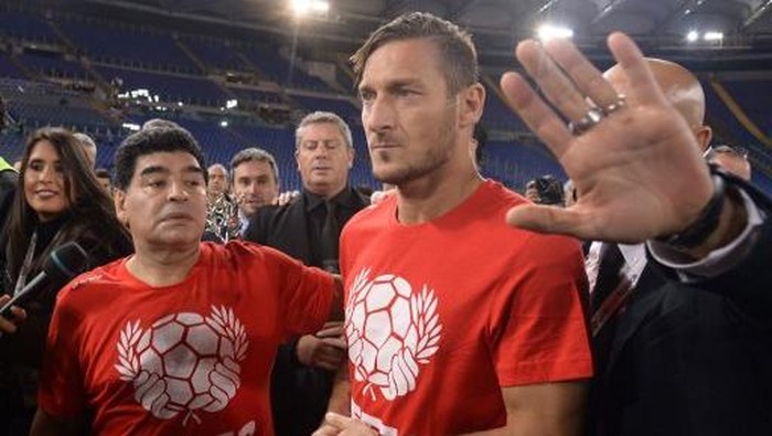 Totti yang mendengar pujian tersebut tak mau kalah. Menggunakan kalimat serupa, kapten Roma itu balik menuturkan sanjungan kepada Maradona.