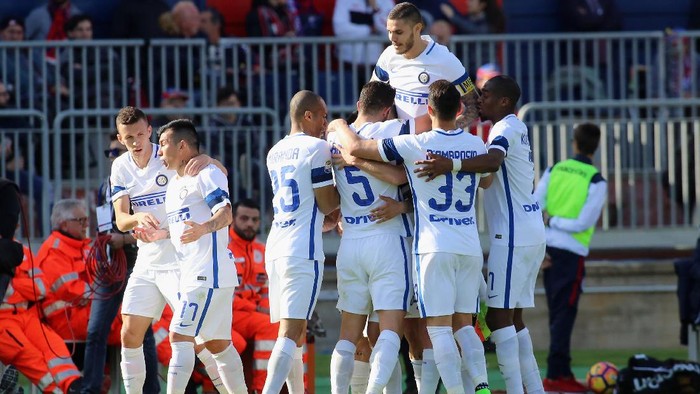 Inter menggilas Cagliari dengan skor 5-1 dalam lanjutan Serie A di Stadio Sant'Elia, Minggu (5/3/2017). Kemenangan telak tersebut menjadi respons Inter atas kekalahan 1-3 dari Roma pada laga sebelumnya.
