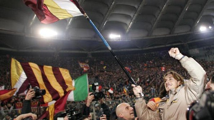 Beruntung, Totti tidak pulang dengan rasa kecewa. Serigala Roma berhasil menang 2-0. Dia ikut merayakan bersama pemain dengan masuk ke dalam lapangan dan mengibar-ngibarkan bendera di hadapan suporter Roma yang ada di tribun Curva Sud.