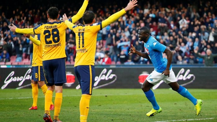 Gol-gol Kalidou Koulibaly dan Jose Maria Callejon menjadi penentu kemenangan Napoli pada pertandingan di San Paolo, Sabtu (6/1/2018). Kemenangan atas Verona menjadi obat luka Napoli setelah mereka disingkirkan Atalanta di perempatfinal Coppa Italia pada tengah pekan ini.