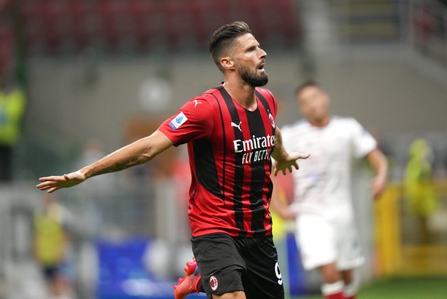 Olivier Giroud bikin start oke bersama AC Milan. Giroud bikin dua gol kala Milan mencukur Cagliari 4-1 di San Siro, pada lanjutan pekan kedua Liga Italia, Senin (30/8) dini hari WIB.