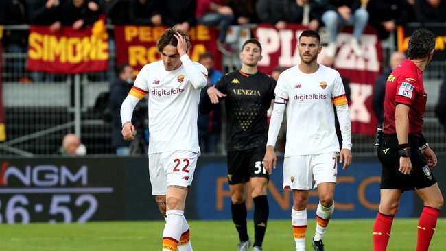 Venezia vs Roma berlangsung di Pier Luigi Penzo, Minggu (7/11/2021) malam WIB. Tim tuan rumah unggul cepat di menit ketiga lewat gol Mattia Caldara.