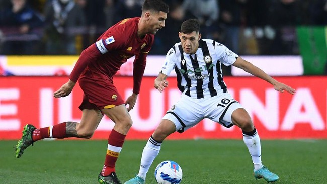 Laga Udinese vs Roma dalam lanjutan Liga Italia digelar di Stadion Dacia Arena, Senin (14/3/2022) dini hari WIB. Roma kebobolan lebih dulu di babak pertama oleh gol Nahuel Molina pada menit ke-15.