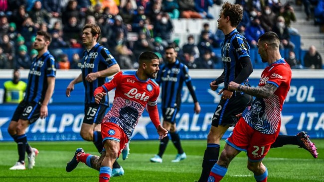 Atalanta vs Napoli berlangsung di Gewiss Stadium, Minggu (3/4/2022) malam WIB. Partenopei berhasil unggul 2-0 di babak pertama lewat gol Lorenzo Insigne dan Matteo Politano.