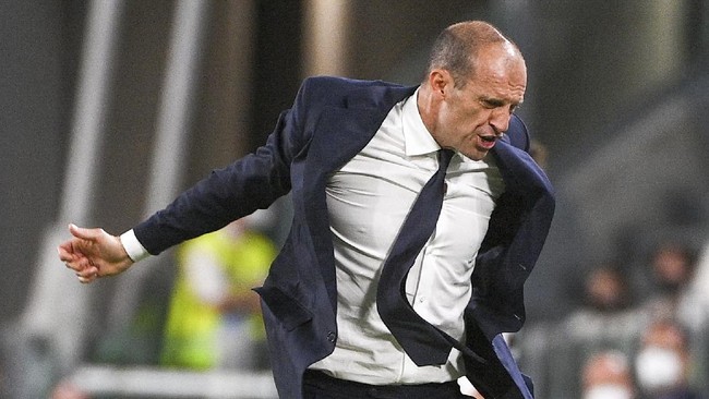 Massimiliano Allegri bereaksi keras atas penalti Inter yang diulang. Dia terekam kamera mengamuk dan melemparkan jaket miliknya ke tanah.