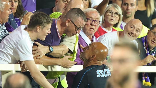 Suporter Fiorentina itu, yang merupakan seorang pria paruh baya, sempat berusaha menampar Spalletti tapi ditahan oleh petugas. Sementara di tengah keributan itu, Spalletti juga terlihat dilempar botol.