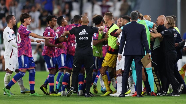 Sebuah drama tersaji di penghujung laga Juventus vs Salernitana. Ada empat kartu merah yang dikeluarkan wasit Matteo Marcenaro.
