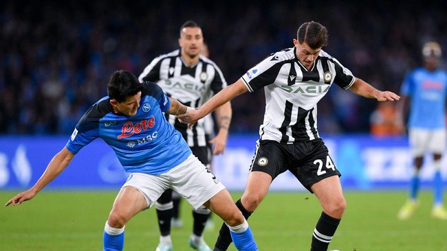 Napoli meraih kemenangan 3-2 atas Udinese di Stadio Diego Armando Maradona dalam laga lanjutan Liga Italia, Sabtu (13/11/2022). Hasil ini bikin Il Partenopei semakin kukuh di puncak klasemen Serie A dengan 41 angka unggul 11 poin dari Lazio di urutan kedua.