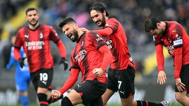 Milan melawat ke Stadion Carlo Castellani, Minggu (7/1/2024) malam WIB. Mereka memimpin di menit ke-11 lewat Ruben Loftus-Cheek sebelum diperbesar Olivier Giroud lewat titik putih pada menit ke-29.