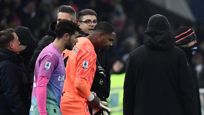 Maignan langsung mencopot sarung tangannya dan berjalan menuju bench. Sikapnya didukung rekan-rekannya, dengan skuad AC Milan juga keluar lapangan.