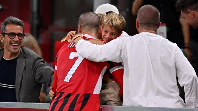 Alvaro Morata menyumbang satu gol dalam kemenangan 3-0 AC Milan atas Lecce. Morata dengan emosional merayakan golnya bersama sang anak.