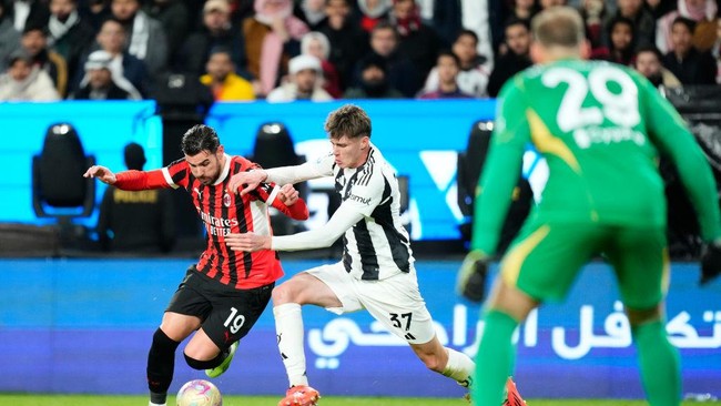 Juventus vs Milan tersaji pada semifinal Piala Super Italia di Al Awwal Park, Riyadh, Arab Saudi, Sabtu (4/1/2025) dini hari WIB. Sempat unggul lebih dulu, Bianconeri akhirnya kalah 1-2.