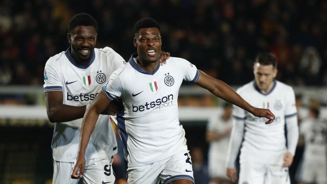 Inter menghadapi Lecce di Via del Mare, Senin (27/1/2025) dini hari WIB. Tampil dominan sedari menit awal, Inter menang 4-0 lewat gol-gol Davide Frattesi, Lautaro Martinez, Denzel Dumfries, dan penalti Mehdi Taremi.