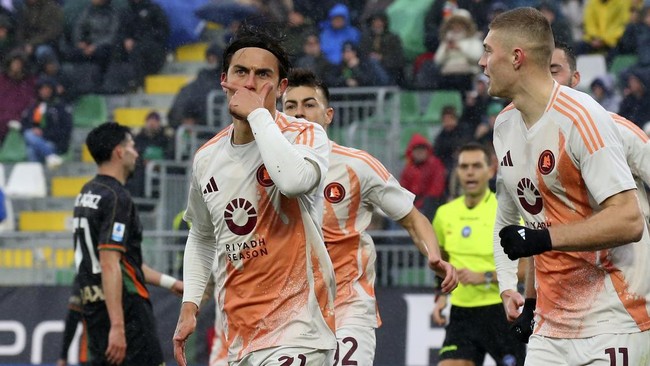Yang terbaru, Roma memetik kemenangan di markas Venezia dengan skor 1-0. Dalam pertandingan di Stadio Pier Luigi Penzo, Venezia, Minggu (9/2/2025) malam WIB, Dybala mencetak gol tunggal Roma lewat penalti.