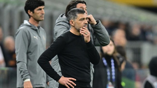 Pelatih AC Milan Sergio Conceicao di ambang pintu keluar San Siro usai gagal juara Coppa Italia. Dua laga sisa Serie A bakal jadi penentu nasibnya.