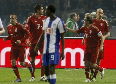 Dalam partai Bundesliga pekan ke-26 di Olympiastadion, Minggu (18/3/2012) dinihari WIB, Bayern yang datang sebagai tim tamu mengamuk lewat trigol Arjen Robben, dan masing-masing satu gol dari Thomas Mueller, Mario Gomez, dan Toni Kroos.