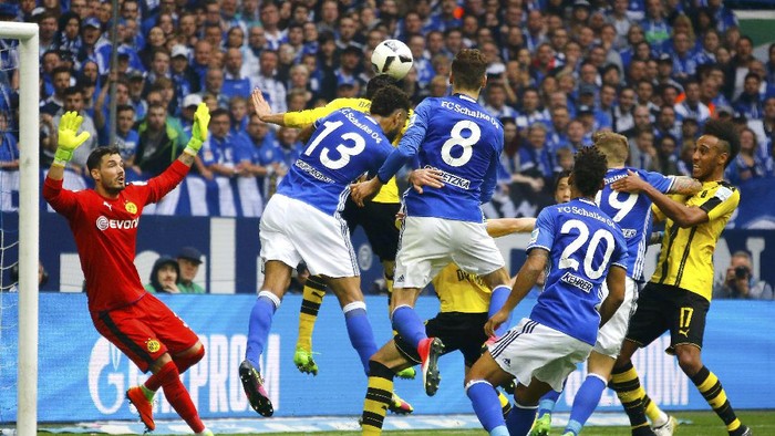 Laga derby Ruhr yang mempertemukan Schalke 04 kontra Borussia Dortmund di Veltins Arena, Sabtu (1/4/2017), berakhir imbang 1-1.