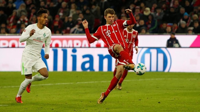 Pada pertandingan di Allianz Arena, Minggu (21/1/2018), Bayern tertinggal lebih dahulu sebelum mengalahkan Bremen 4-2. Mueller dan Robert Lewandowski menginspirasi kemenangan Die Roten dengan masing-masing menyumbang sepasang gol.