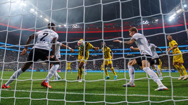 Namun, keunggulan Dortmund cuma bertahan sebentar. Frankfurt menciptakan gol balasan yang dicetak Daichi Kamada sehingga permainan seimbang 1-1 di menit ke-26.