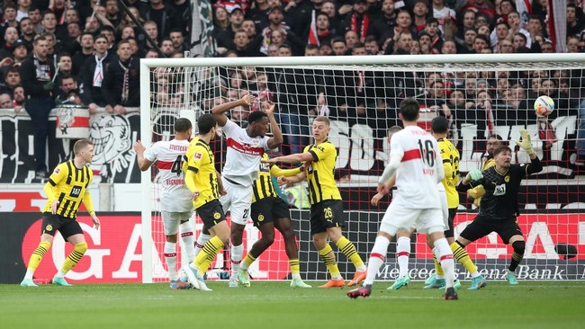Stuttgart vs Dortmund berlangsung di Mercedes-Benz Arena, Sabtu (15/4/2023) malam WIB. Tuan rumah mencoba menekan duluan dan ada percobaan dari Josha Vagnomandi menit kelima yang melebar.