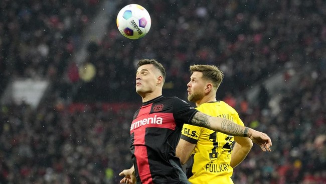 Tidak ada pemenang di partai Bayer Leverkusen vs Borussia Dortmund. Skor akhir adalah 1-1.