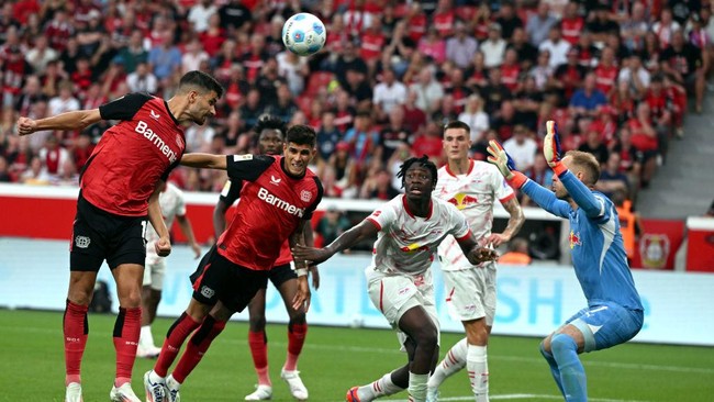 Leverkusen vs Leipzig berlangsung di BayArena, Sabtu (31/8/2024) malam WIB. Tuan rumah mengancam di menit kesembilan saat bola sundulan Piero Hincapie membentur tiang.
