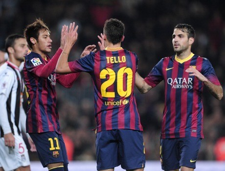 Barcelona: Pinto, Puyol, Montoya, Adriano (Bartra 80'), Mascherano, Song, Sergi, Cesc Fábregas (Iniesta 75'), Pedro (Alexis 76'), Neymar, Tello