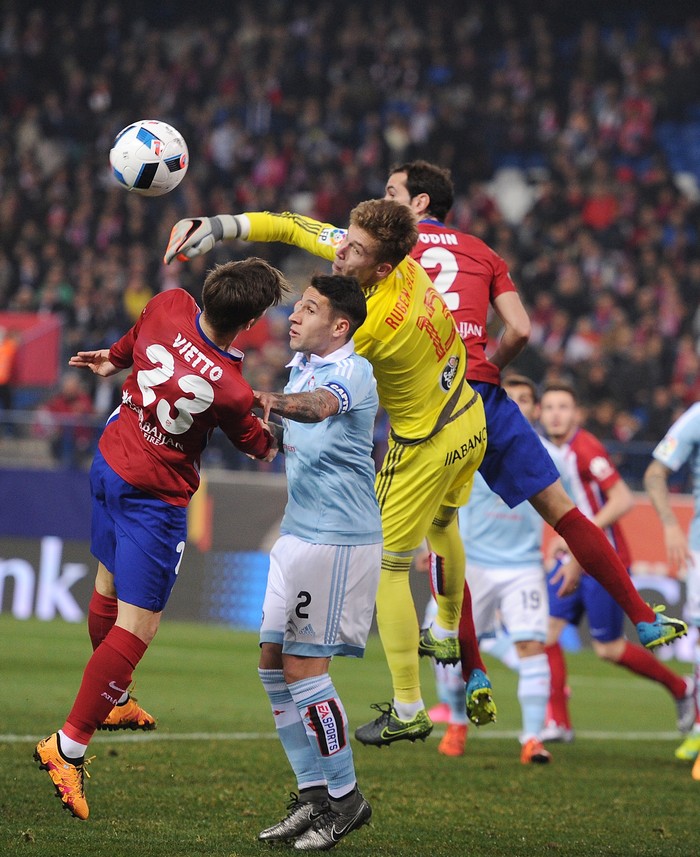 Giliran Antoine Griezmann melakukan percobaan di menit ke-13, dari luar kotak penalti. Sepakannya bisa dihalau kiper Celta Ruben Blanco dan sempat memantul. Luciano Vietto mencoba mencocor bola tapi Blanco kembali sigap mengamankannya.