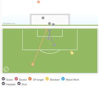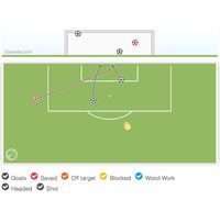 Data Squawka.com memperlihatkan bahwa ia sebenarnya melepaskan dua tembakan lain dari luar kotak penalti, tapi satu tembakan kena blok sedangkan tembakan lain masih bisa diamankan lawan di bawah mistar gawang.