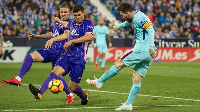 Berdiri sendirian di titik awal permainan, pemain asal Maroko yang sedang dipinjamkan Watford ke Leganes itu bukannya lebih dulu mengoper bola ke rekannya (di belakang atau di sampingnya jika ada). Ia justru langsung menggiring bola sendirian ke arah area main Barca.