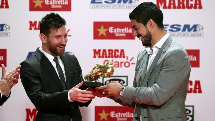 Seremoni penyerahan Sepatu Emas Eropa digelar pada Jumat (24/11/2017) waktu setempat. Messi menerima Sepatu Emas Eropa dari pemenang musim lalu, Luis Suarez.