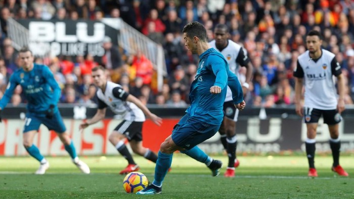 Madrid memainkan trio Ronaldo, Karim Benzema, dan Gareth Bale sebagai starter di lini depan ketika bertandang ke Mestalla, Sabtu (27/1/2018). Ini adalah sebuah pemandangan langka. Terakhir kali tiga pemain itu jadi starter secara bersamaan adalah pada April tahun lalu.